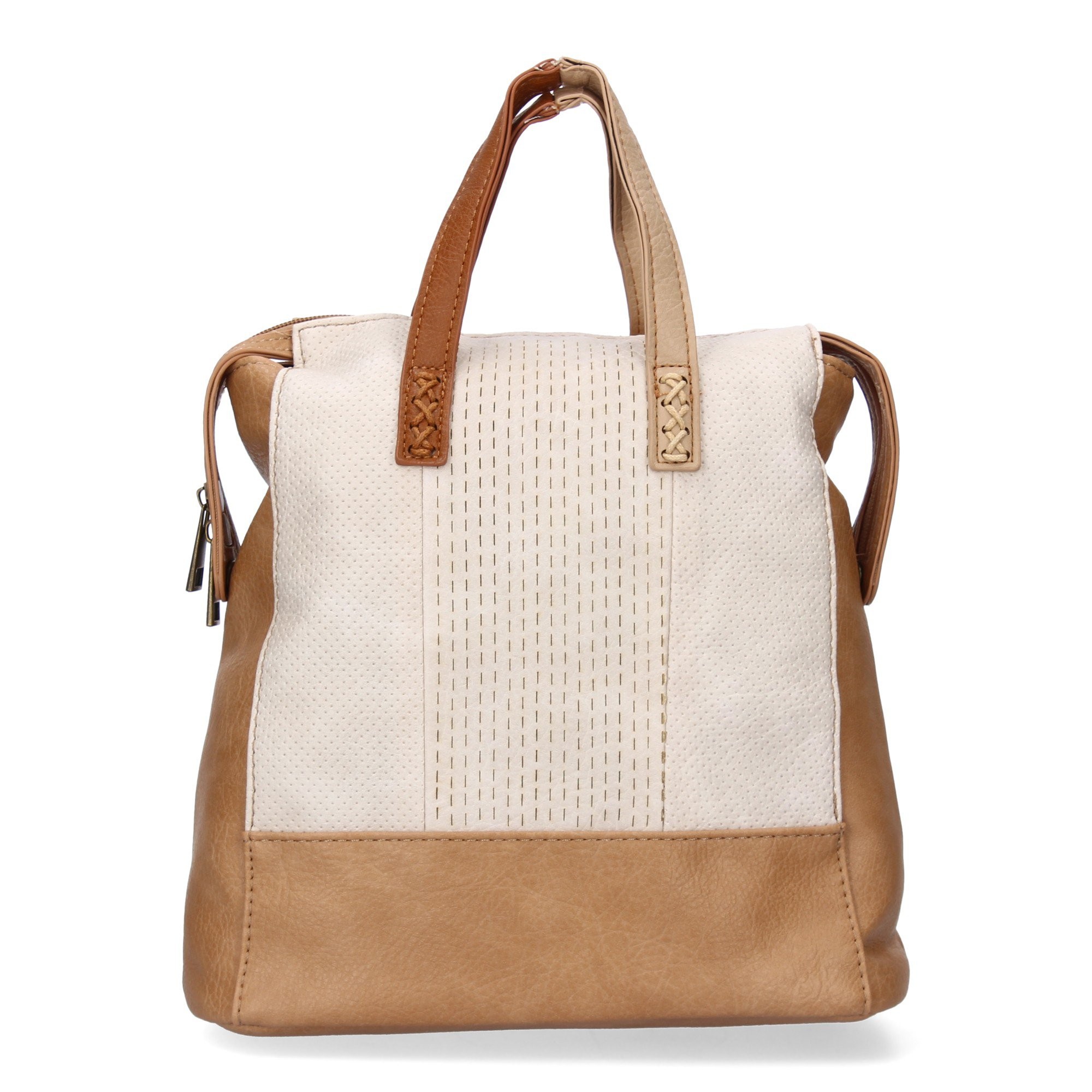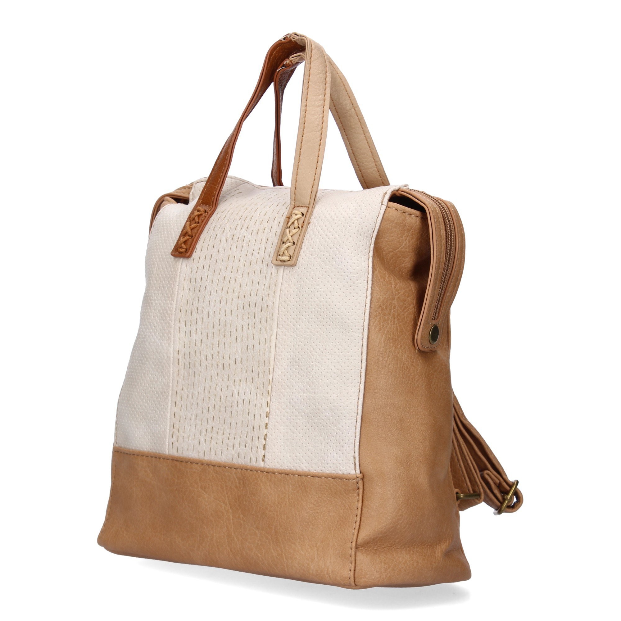 Mochila para mujer con correas ajustable, compartimento principal con cremallera y bolsillo en la parte trasera.