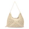 Bolso de hombro para mujer, material de rafia, diseño elegante y moderno ideal para verano, compartimento principal con cremallera en el interior, dos bolsillos, uno de ellos de cremallera.