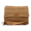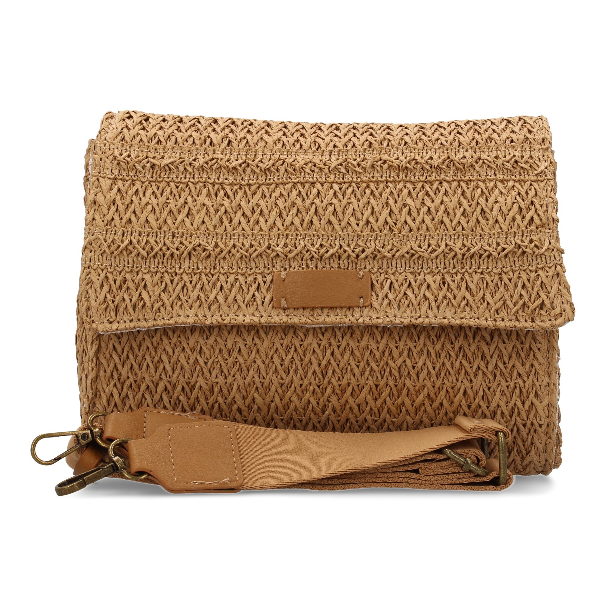 Bandolera de rafia para mujer, diseño moderno y cómodo, compartimento principal con botón de imán y en el interior dos bolsillos, uno con cremallera.