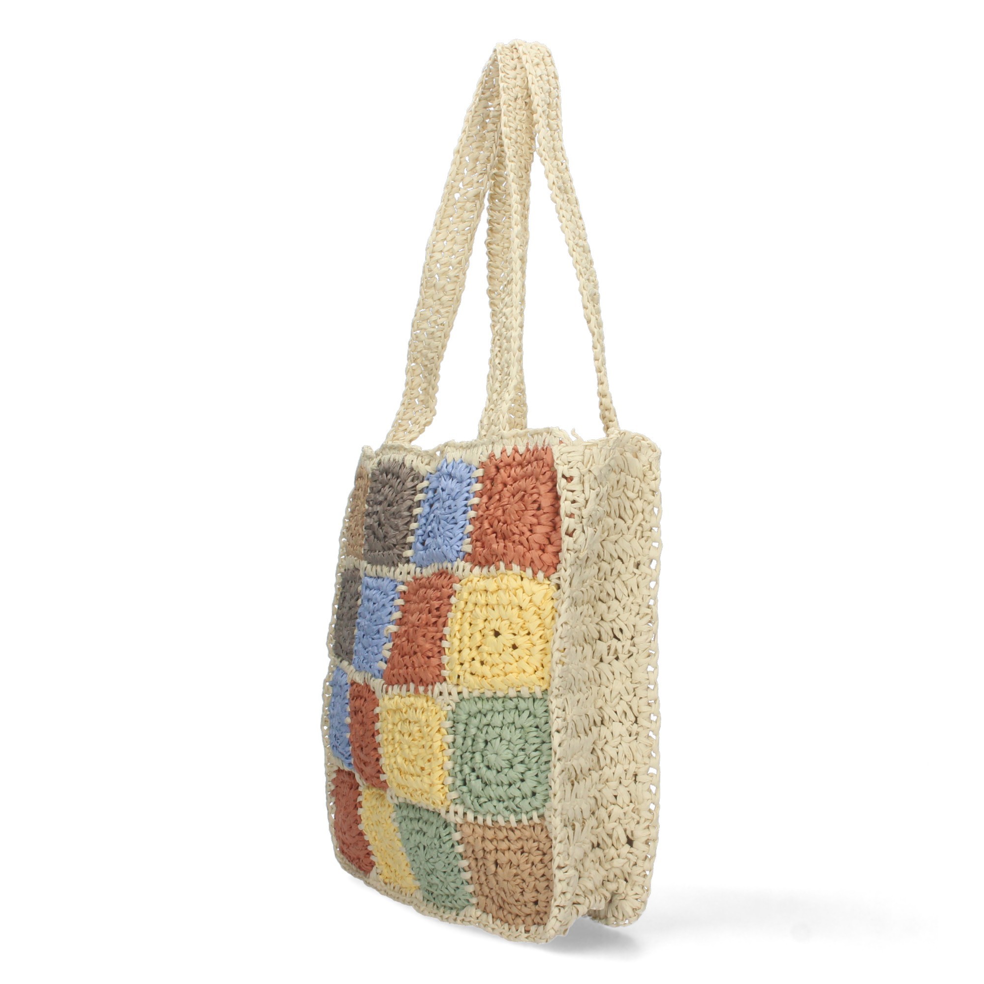 Bolso de Mano para Mujer, con Rafia Entrelazada, Estampado Multicolor, 1 Bolsillo Interior, y Cierre de Cremallera