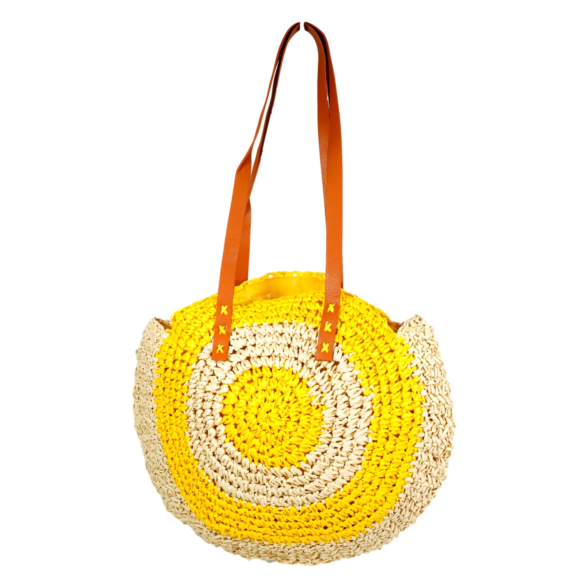 Capazo Playero echo de Rafia, con Asa Medio Larga, y Cierre de Cremallera
