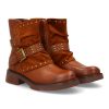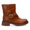Bota de mujer estilo biker con diseño robusto y urbano perfecta para destacar en la temporada Otoño Invierno. Diseño que combina materiales lisos y texturizados decorados con tachuelas metálicas y doble correa con hebilla ajustable.
