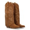 Bota para mujer estilo cowboy acabada en punta y con grabados bordados en la caña. Tacon cubano y cierre de cremallera.