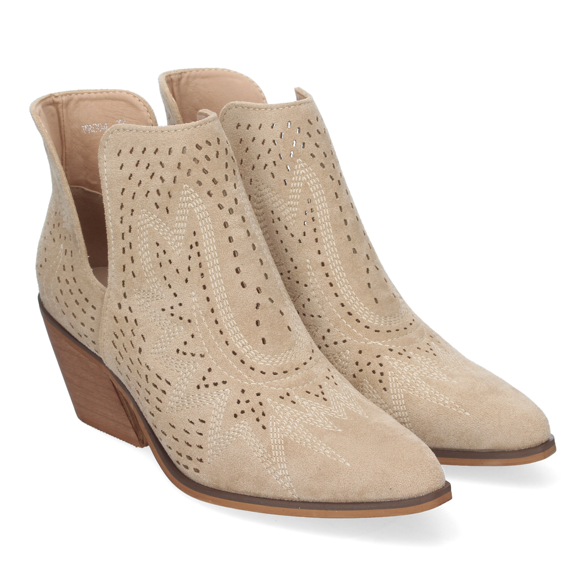 Botines de Tacón Campero para Mujer Primavera Verano Elegantes y Comodos Diseño Perforado con Estampado en la pala perfectos para cualquier ocasión.