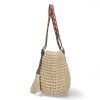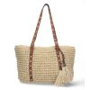 Bolso de Hombro Amplio para Mujer, con Material de Rafia, Flecos, Remaches, 1 Bolsillo Interior, y Cierre de Cremallera