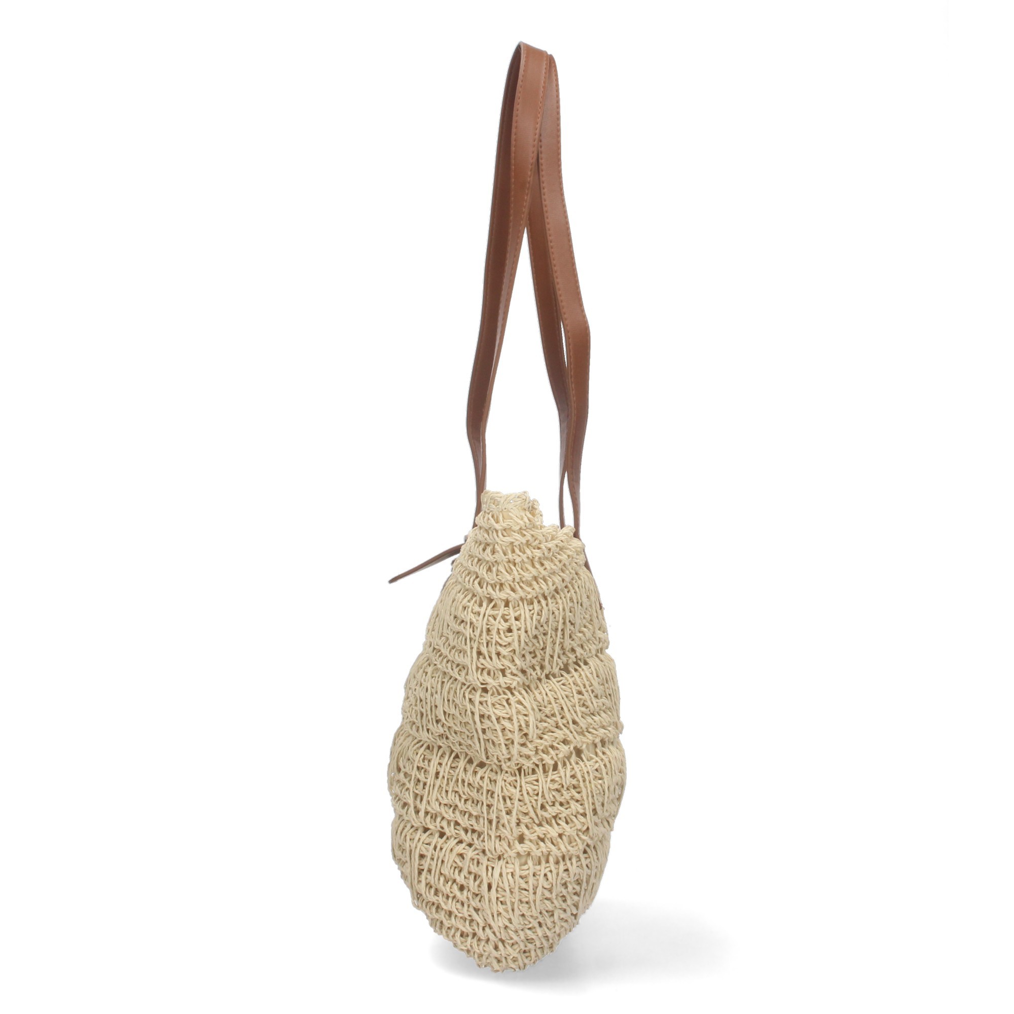 Bolso de Hombro para Mujer, con Material de Rafia, 1 Bolsillo Interior, y Cierre de Cremallera