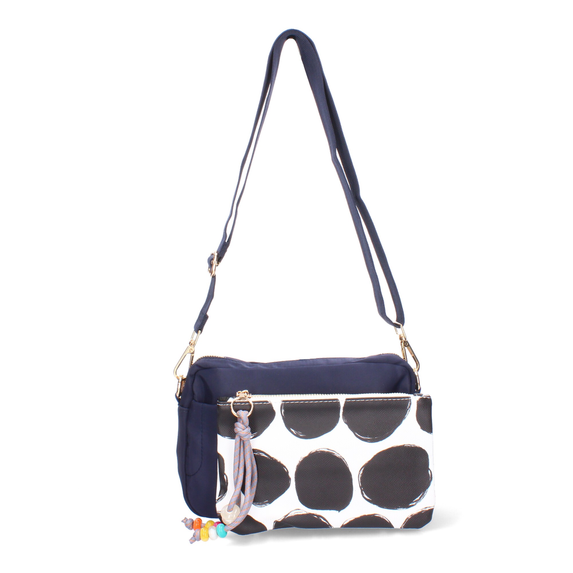 Bandolera de Mujer con dos piezas, bandolera y bolso de mano, compartimento principal con cremallera. En el interior cuenta con un bolsillo abierto y otro de cremallera.