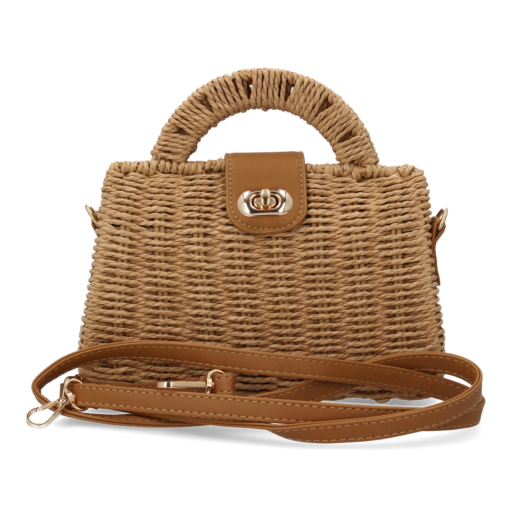 Bolso de hombro para mujer, material de rafia, diseño elegante y moderno ideal para verano, compartimento principal de broche.