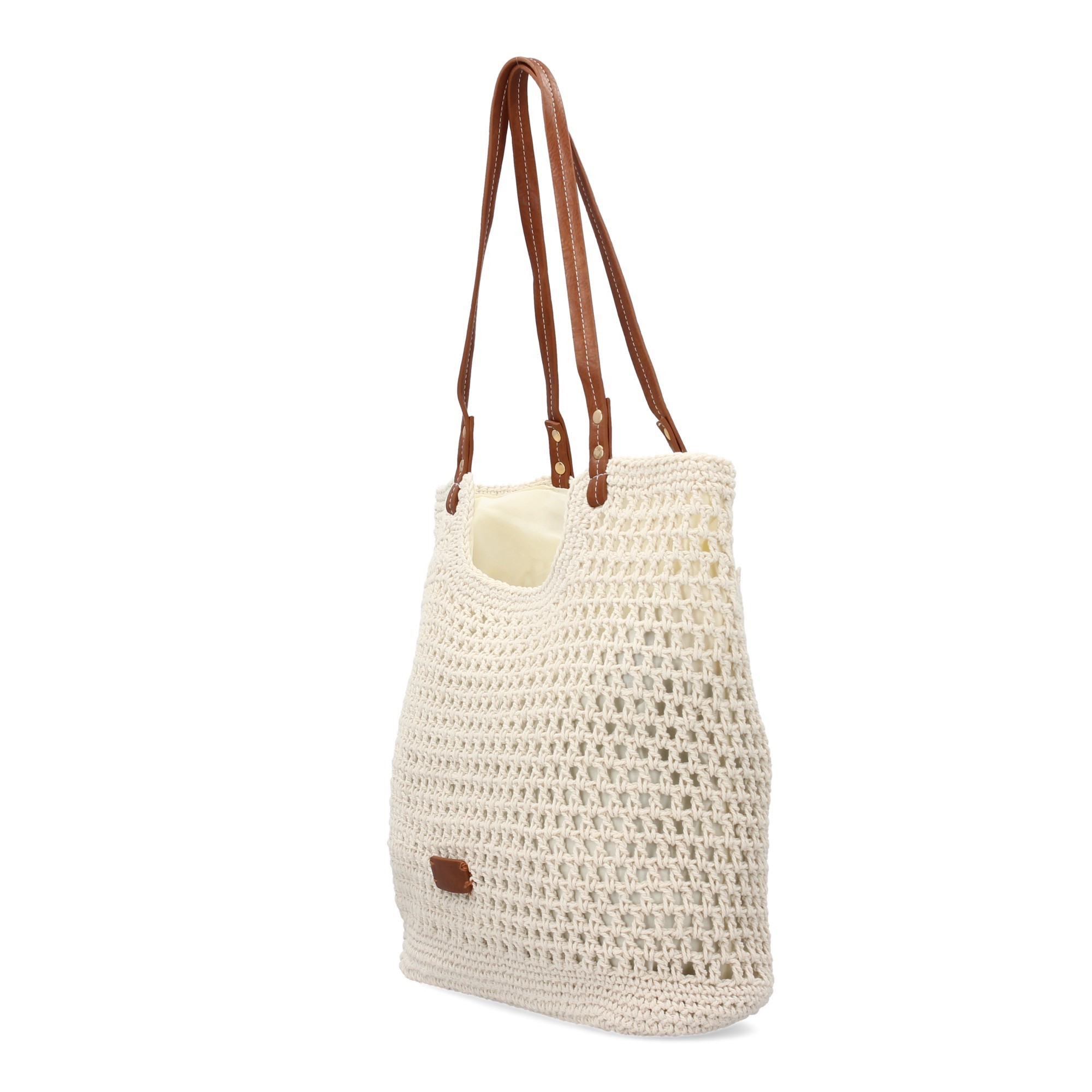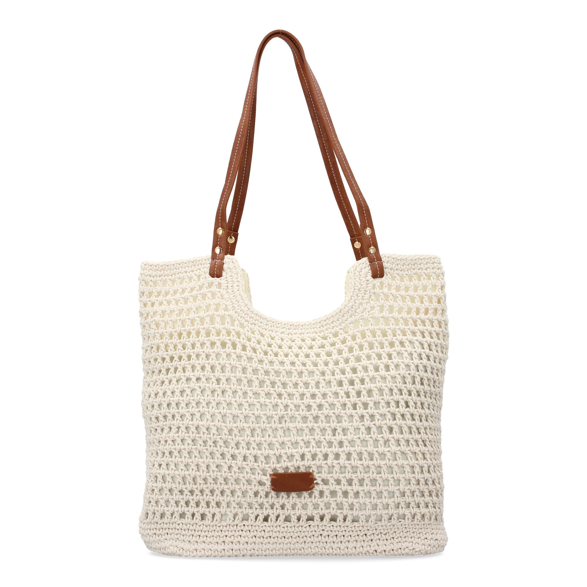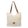 Bolso de hombro para mujer de rafia, diseño moderno con adorno, cómodo, en el interior compartimento principal de cremallera y un bolsillo.